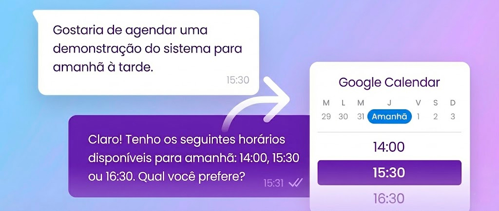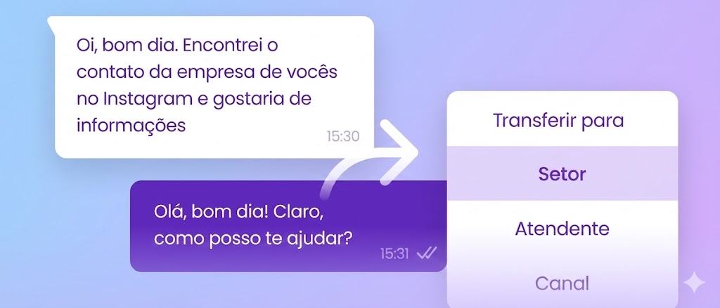 A IA entende o cliente, responde dúvidas, qualifica leads e direciona para o atendente certo no momento certo.