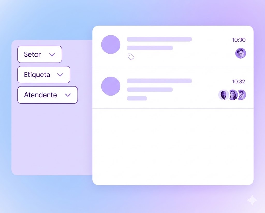 Distribua conversas entre pessoas e setores, acompanhe atendimentos e mantenha tudo organizado.